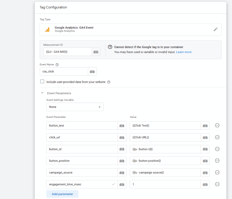 Register parameters as custom dimensions/metrics in GA4 for better reporting.